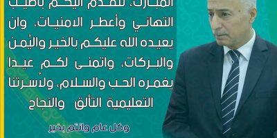 عميد التخطيط الحضري والاقليمي يهنئ منتسبيه بحلول عيد الاضحى المبارك