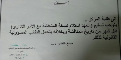 اعلان الى طلبة مركز التخطيط الحضري والأقليمي للدراسات العليا