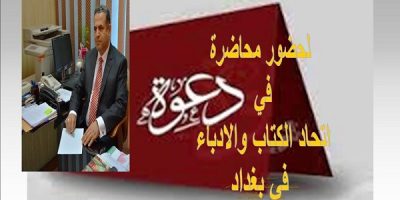 دعوة لحضور محاضرة في اتحاد الكتاب والادباء في بغداد