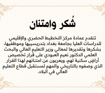جامعة بغداد مركز التخطيط الحضري والاقليمي للدراسات العليا 2025