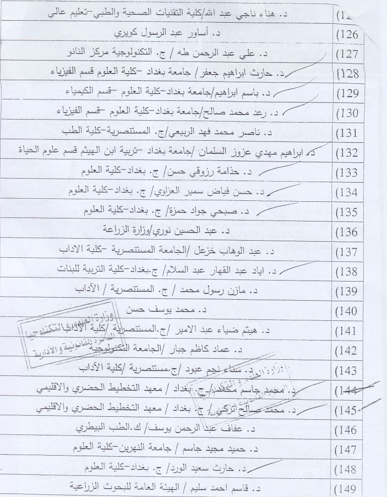 أكاديميو مركز التخطيط الحضري والإقليمي ينالون الشكر والتقدير من وزارة العلوم والتكنلوجيا