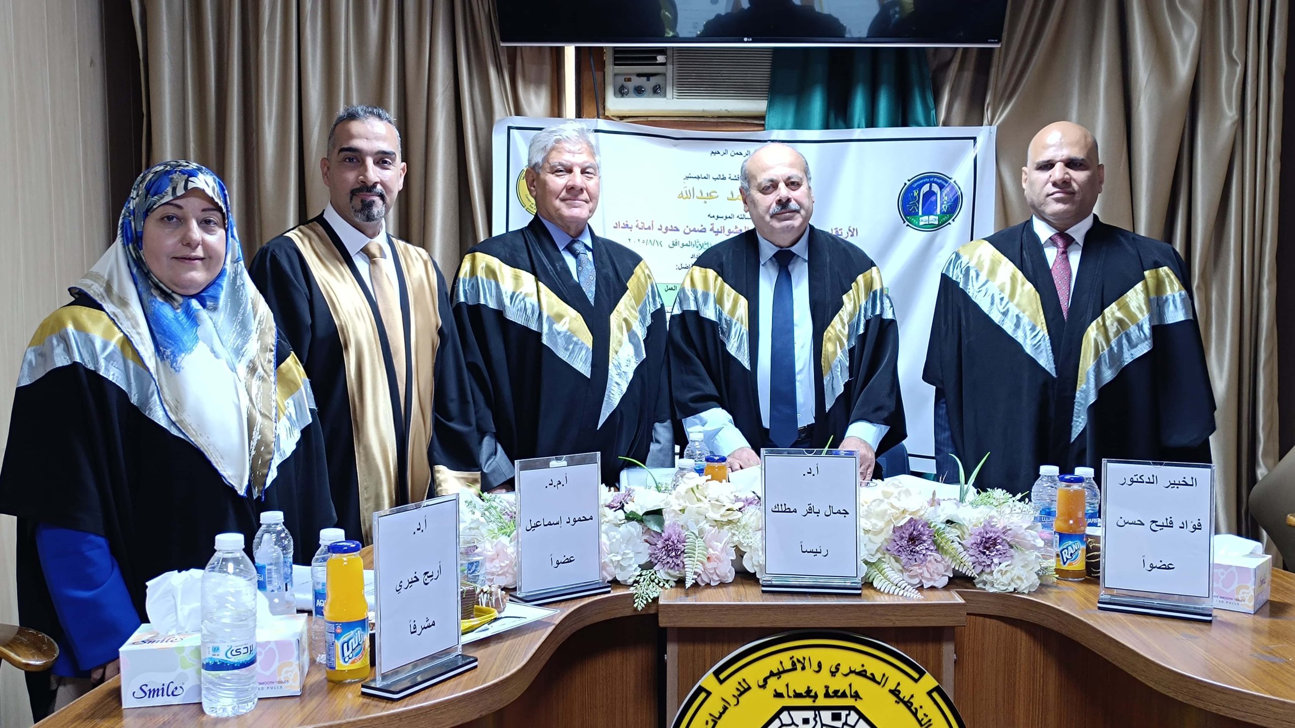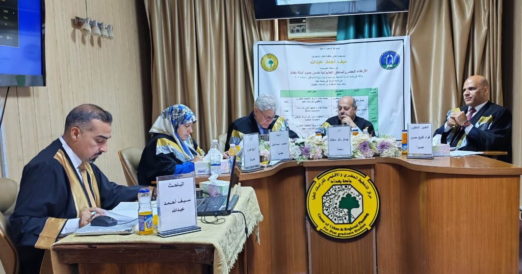 شهد مركز التخطيط الحضري والاقليمي الدراسات العليا بجامعة بغداد مناقشة رسالة الماجستير الموسومة ( الارتقاء الحضري للمناطق العشوائية ضمن حدود امانة بغداد ) للطالب سيف احمد عبد الله، واشراف الاستاذ الدكتورة اريج خيري عثمان.