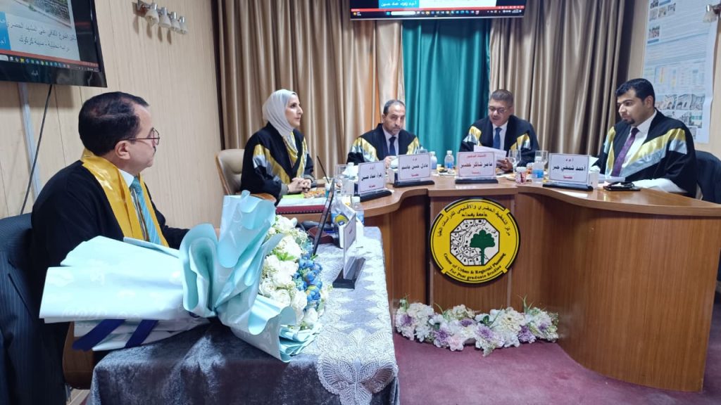 ناقش مركز التخطيط الحضري والإقليمي للدراسات العليا بجامعة بغداد رسالة الماجستير الموسومة ( تأثير التنوع الثقافي على المشهد الحضري-دراسة تحليلية مدينة كركوك )، للطالب حاجم حامد علي، وإشراف الأستاذ المساعد الدكتورة زهراء عماد حسين.