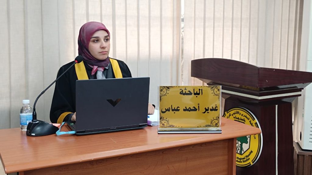 ناقش مركز التخطيط الحضري والاقليمي للدراسات العليا بجامعة بغداد رسالة الماجستير الموسومة ( التوسع الحضري واثره على استدامة الارض الحضرية ) للطالبة غدير احمد عباس، واشراف الدكتور عادل حسن جاسم.