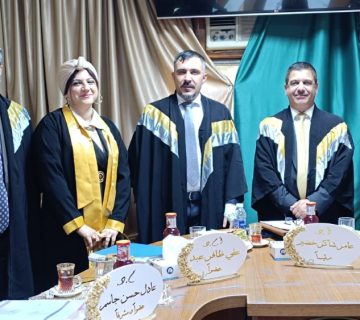 في تمام الساعة التاسعة من صباح يوم الاحد الموافق 15/12/2013 وعلى قاعة المركز في الجادرية جرت مناقشة طالب الدبلوم العالي ” جهاد كاظم محمد ” الموسومة بـ